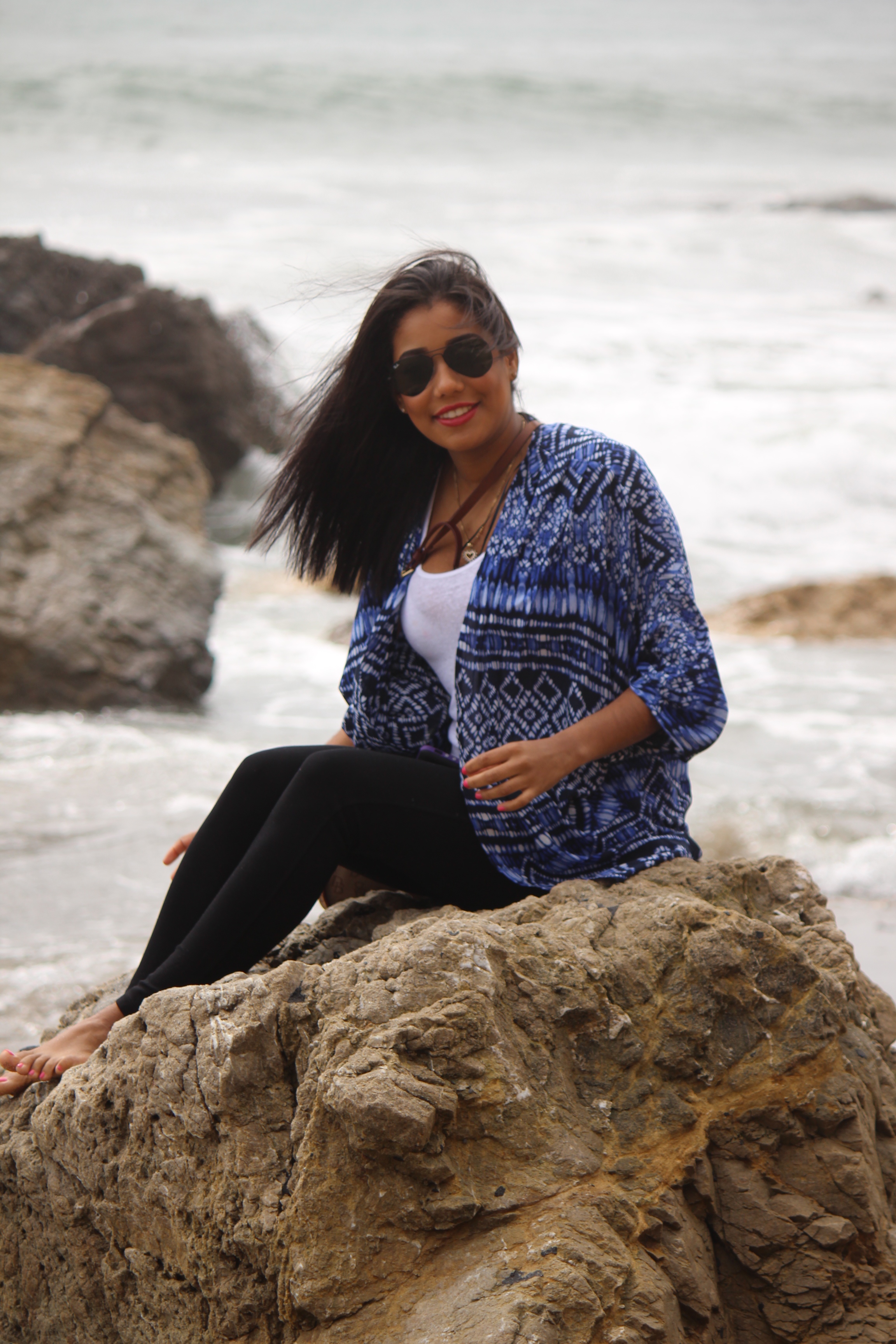 I originally had white shorts on, a Navy tank top and my kimono overtop but the weather was a little too chilly so I changed into this outfit in the car. I just kept my kimono on because I loved it so much. I thought this was the perfect beach outfit and I felt so great in it while in on the beach.